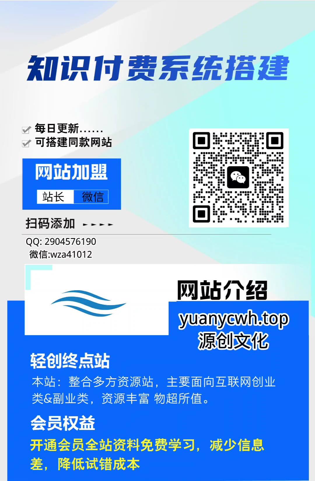 网创资源&实战项目&365天稳定更新 站长微信:wza41012